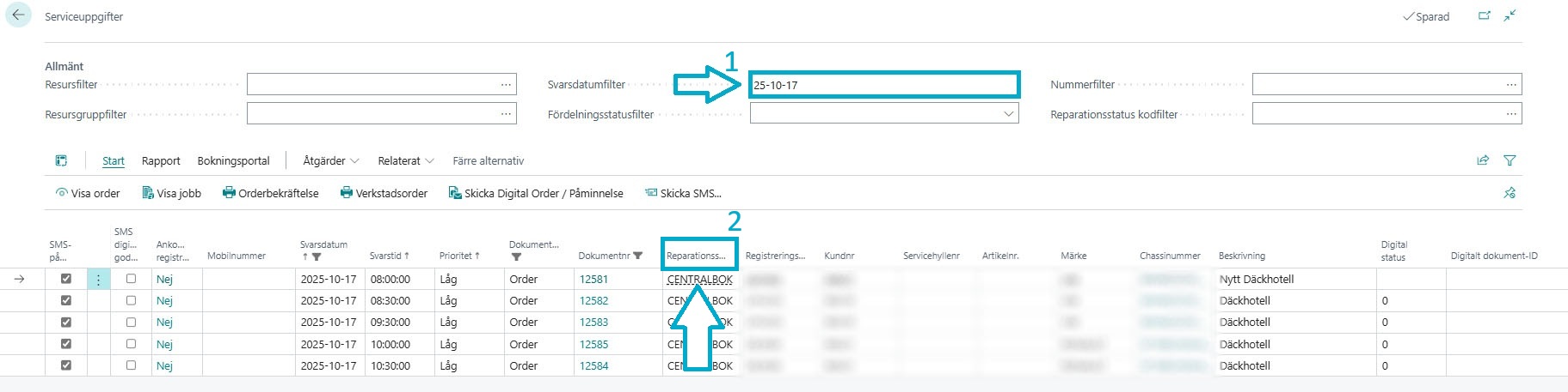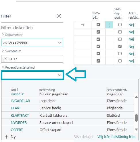 • 10.39 – Filtrera order efter reparationsstatuskod