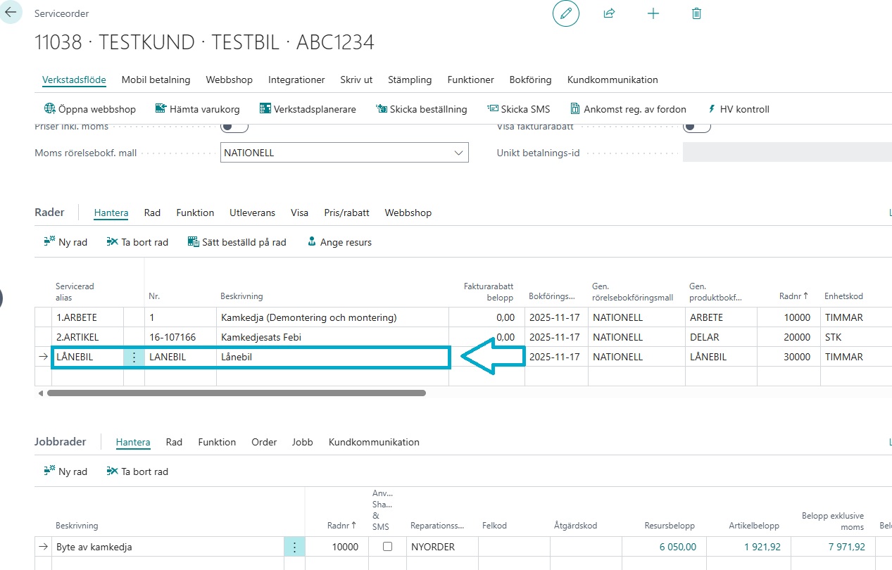 Lägg in en rad som heter LÅNEBIL → LANEBIL för att få med den över till verkstadsplaneraren