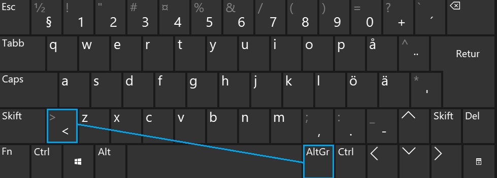 Håll inne AltGr samtidigt som ni trycker på pilarna enligt bild nedan.