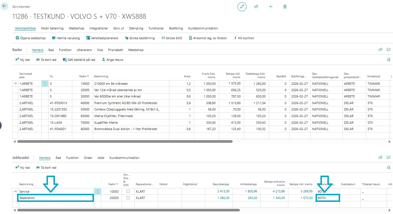 Via Serviceorder → Jobbrader → Välj jobb