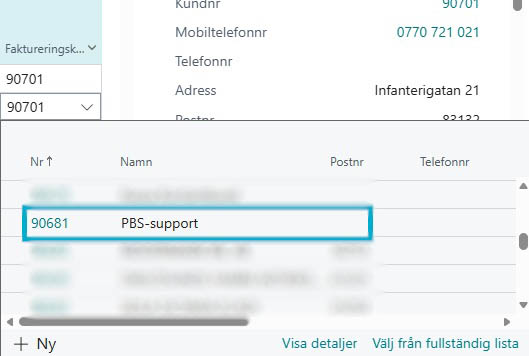 Klicka på kundnumret som visas och leta efter kunden som ni önskar ändra betalare på och klicka på den.