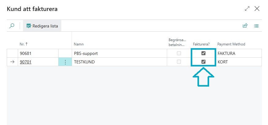 Om båda parterna ska bokföras samtidigt låter ni checkboxarna som är markerade nedan vara ibockad, ska bara t.ex TESTKUND faktureras, bockar ni ur den andra kunden och klickar på ‘Stäng‘.